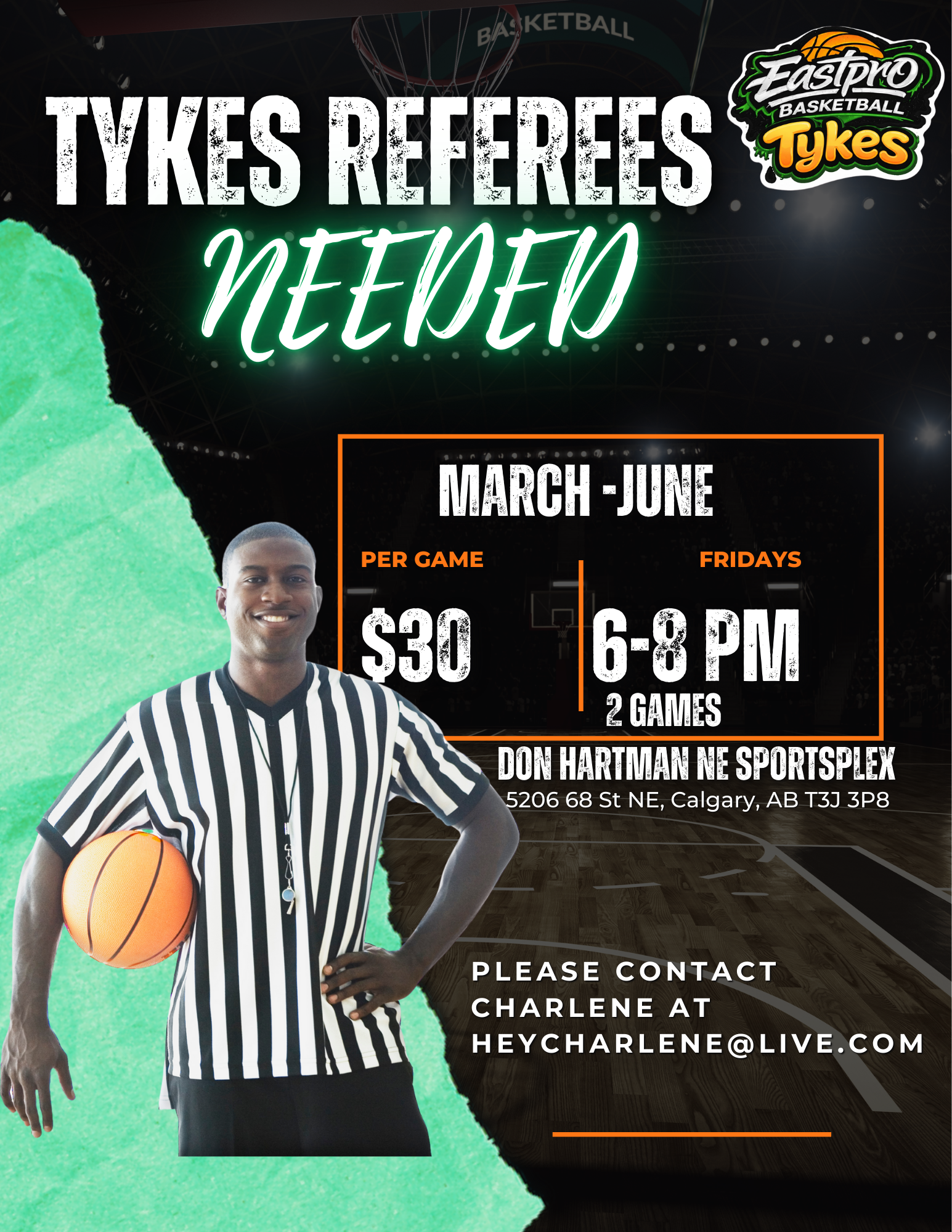Calling all referees that have taken the CMBA Referee Course. We have an opportunity for you to Referee in our Tykes Program!